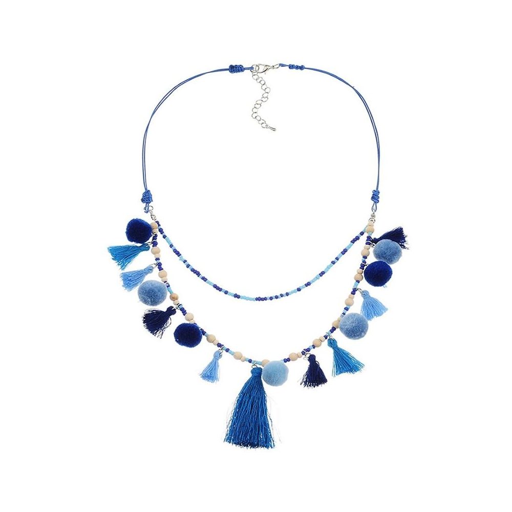 Boho Blue Tassel Pompom Necklace