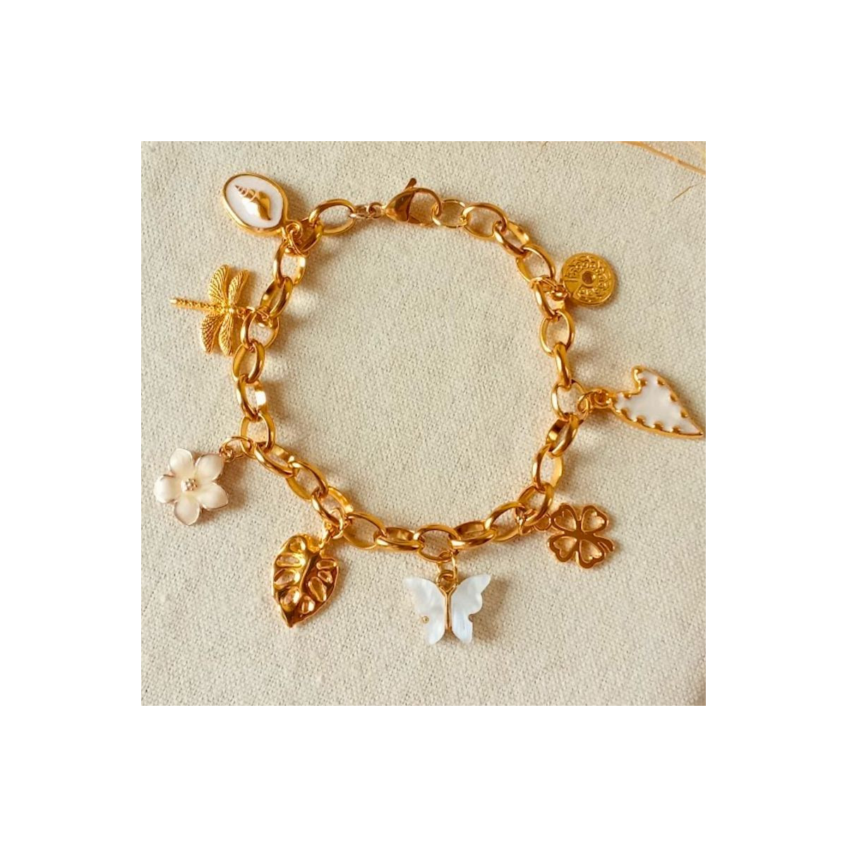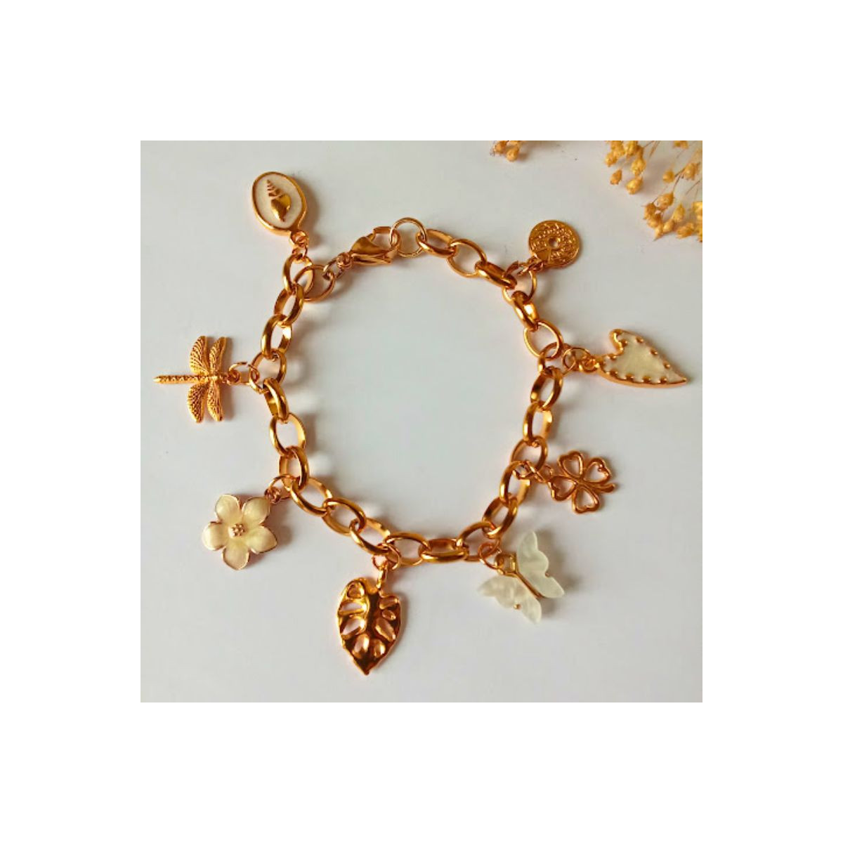 The bracelet measures 20cm, making it perfect for comfortably fitting the wrist. Each charm is carefully selected to add a distinctive and elegant touch, making this bracelet a versatile accessory that complements any outfit.