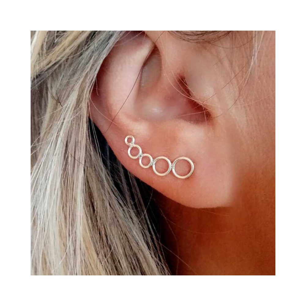 Modern circle climber earrings crafted in 925 sterling silver with a sleek polished finish. Featuring 5 hollow circles for a sophisticated look.