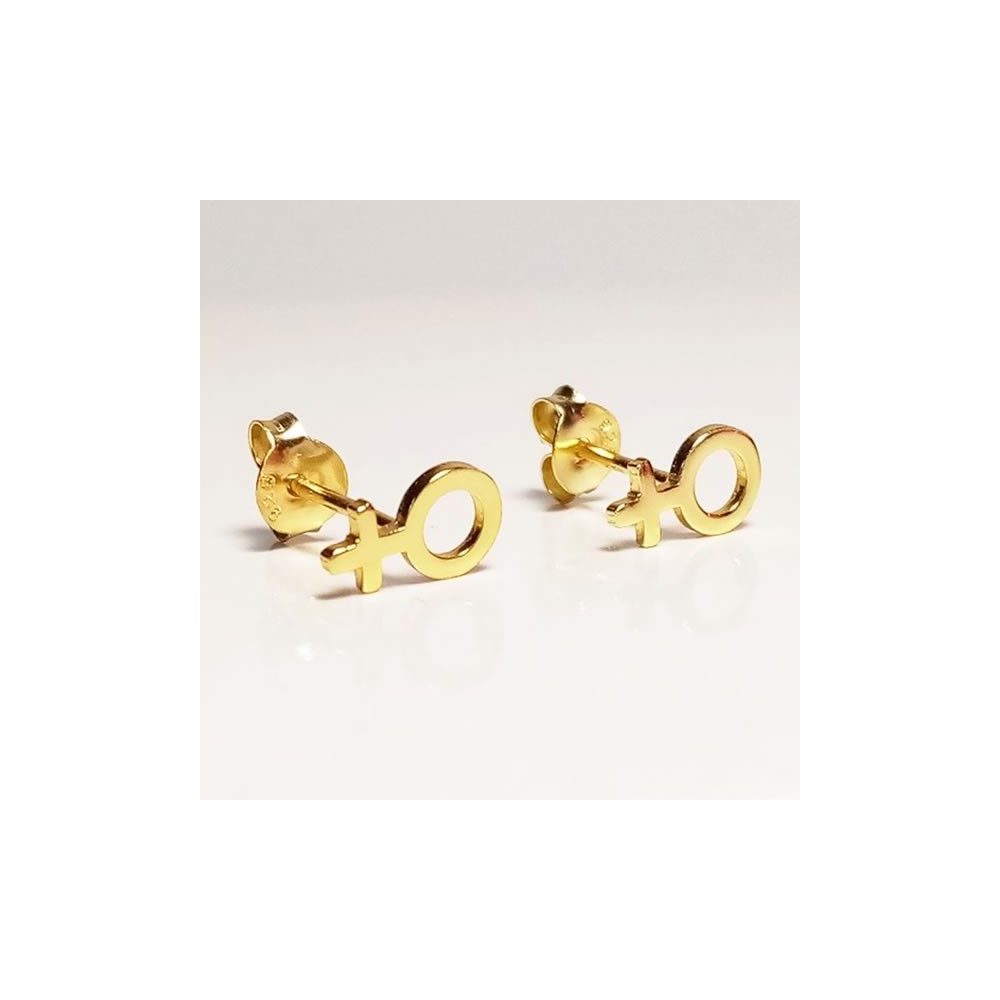 Minimalist earrings in 925 sterling silver with gold plating, featuring the Venus female symbol. Elegant and perfect for daily wear.