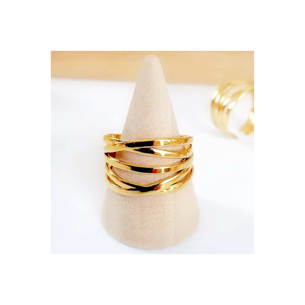 Adjustable stainless steel ring with gold plating, minimalist design with 5 intertwined lines. Perfect for any occasion.