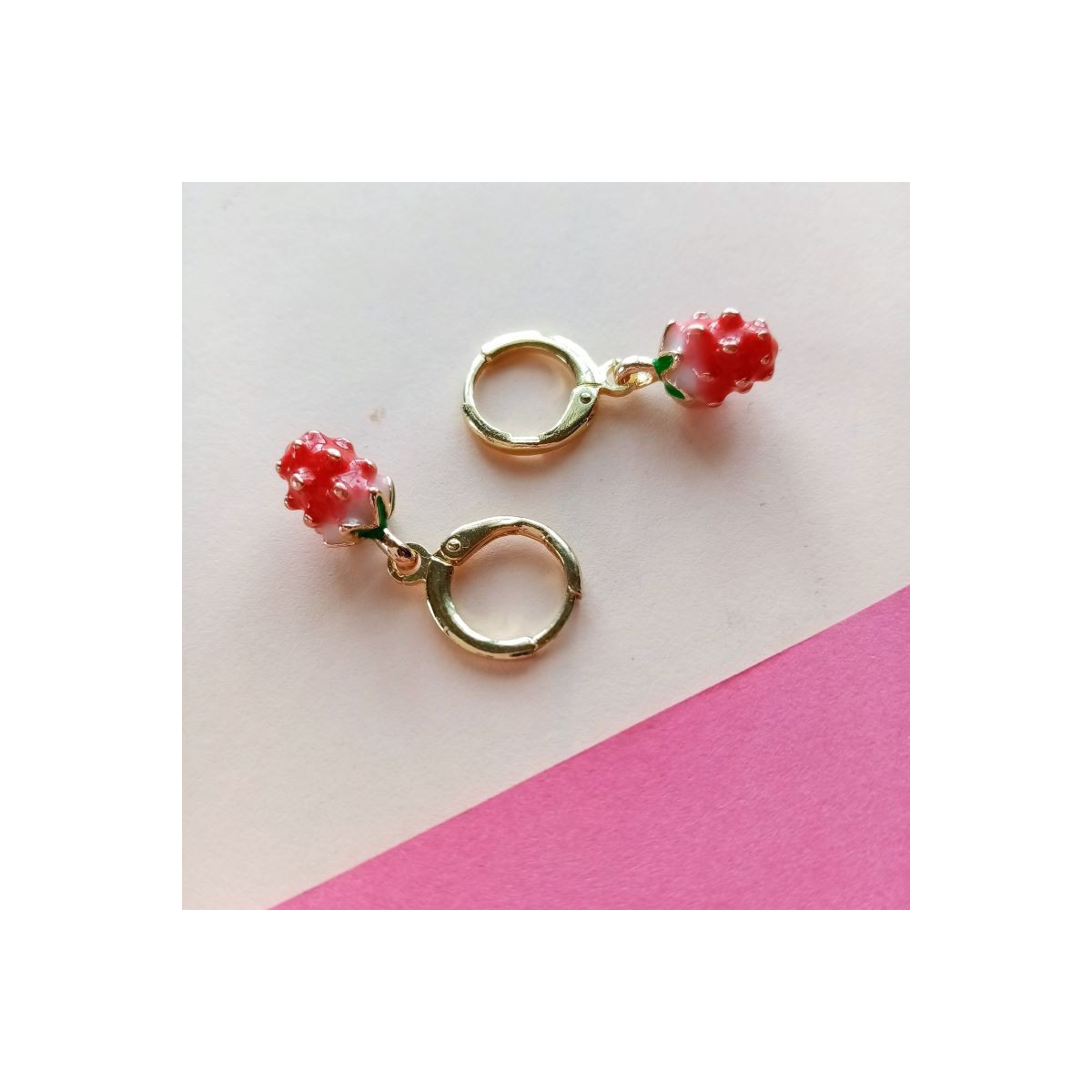 12mm Hoop Earrings with hanging strawberry charm. Original and fun, perfect for a youthful look.