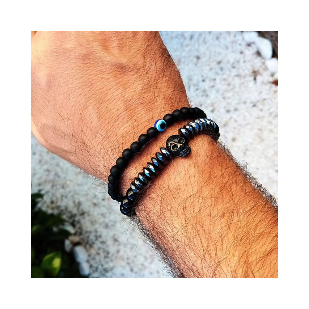 Double-layer protection in one sleek bracelet. Genuine matte black obsidian beads combined with the iconic **evil eye (Nazar) charm** – the ultimate shield against negative energy, envy, and the evil eye. Designed for the modern man who wants discreet style with real meaning.