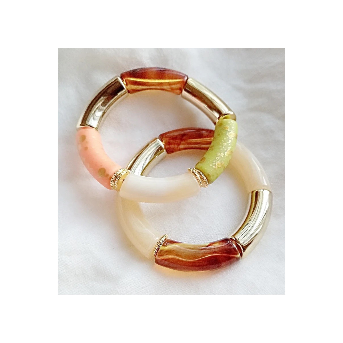 Disponible Women's Jewelry Bambu Guadua Bracelet 935 €14.95 Elastic Bamboo style bracelet in cream, caramel, and gold tones. Elegant, striking, and perfect for any look. This season's novelty! Add to cart