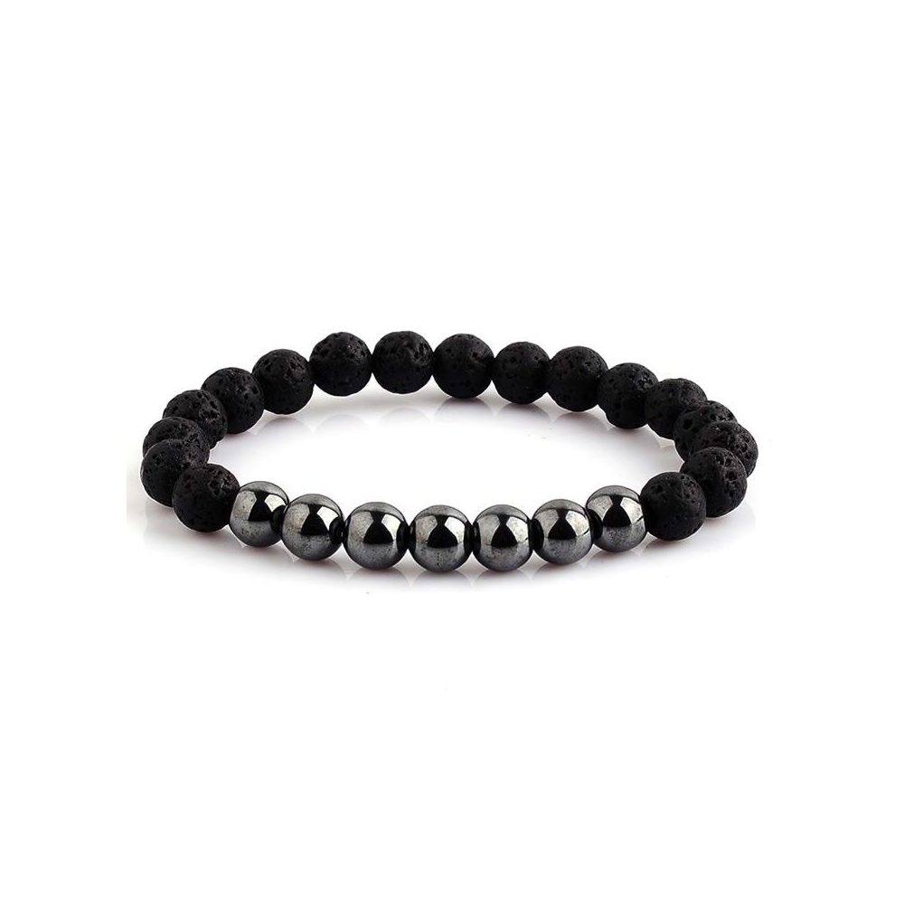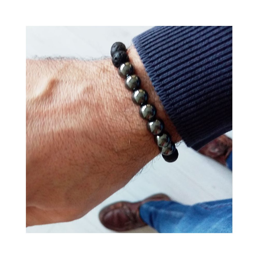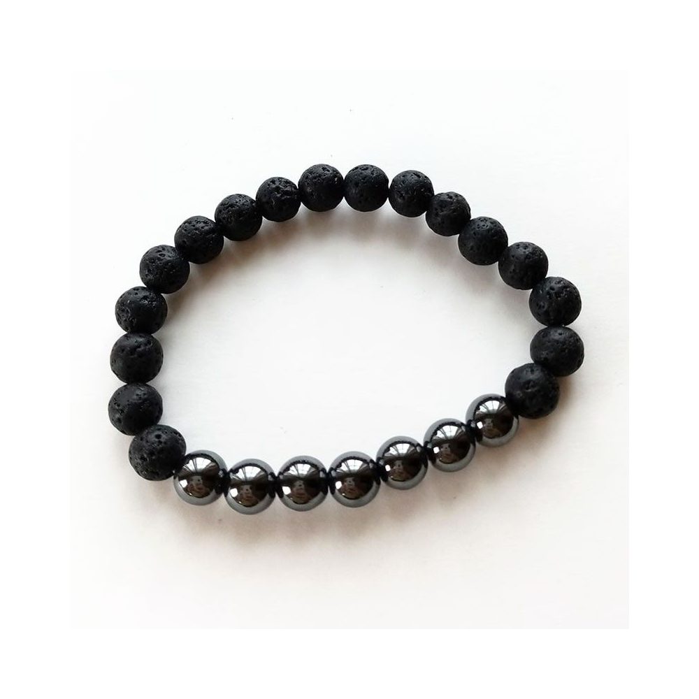 Combina la energía cruda de la tierra con un toque metálico premium. Esta pulsera masculina alterna cuentas de **piedra de lava negra** (volcánica porosa) y **hematita** pulida brillante: el dúo perfecto para grounding, protección energética y un look industrial-moderno que destaca sin forzar el diseño.
