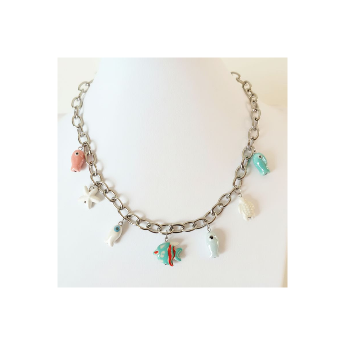 Collar de Acero Inoxidable con Charms Marinos de Cerámica Esmaltada