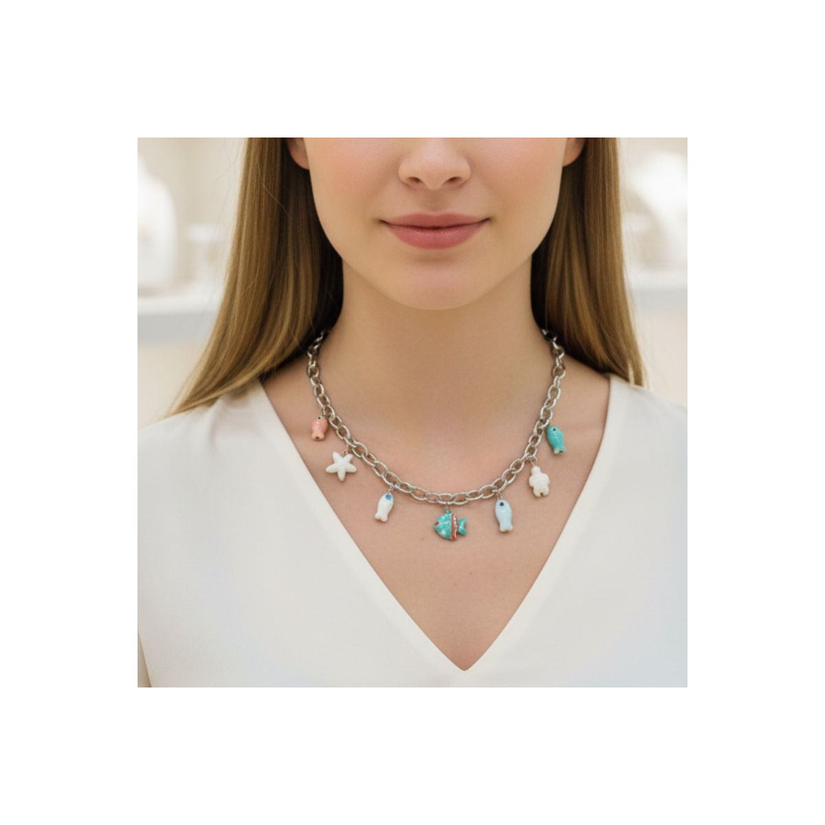 Cada charm está meticulosamente elaborado en cerámica esmaltada, ofreciendo un brillo duradero y colores vibrantes que capturan la esencia del océano.