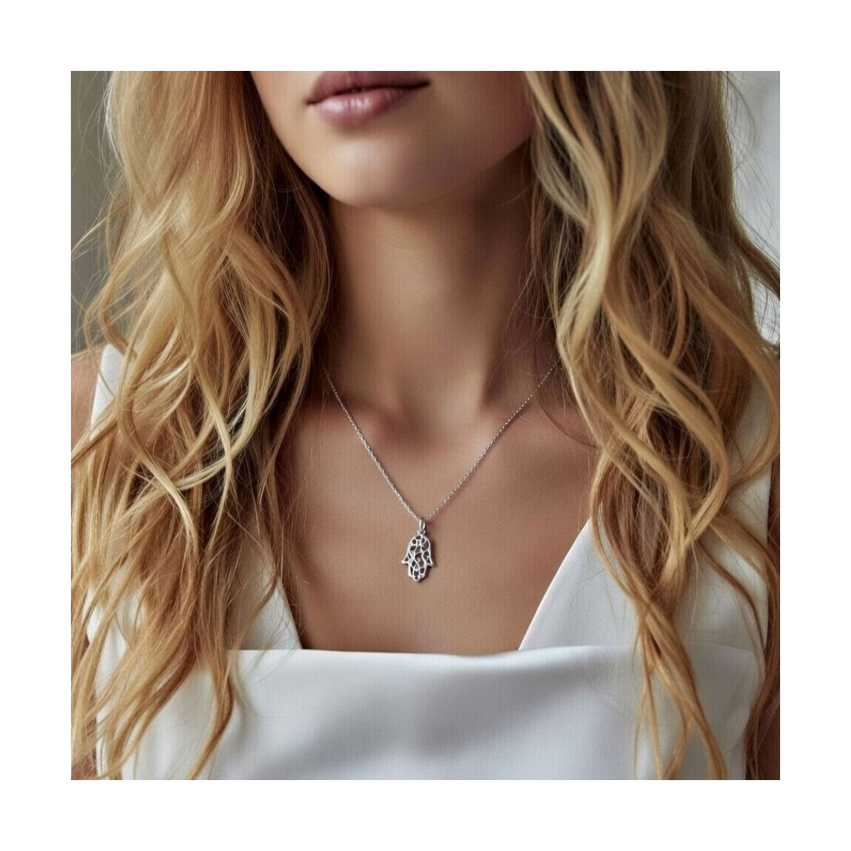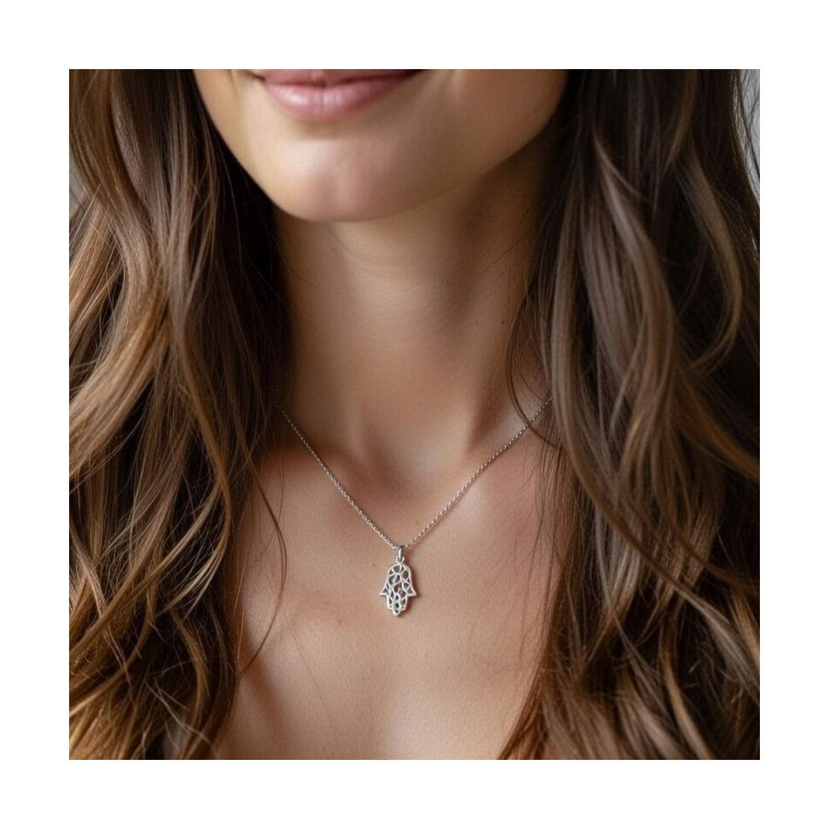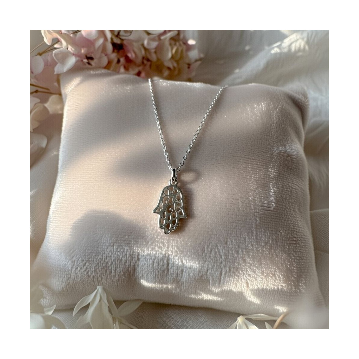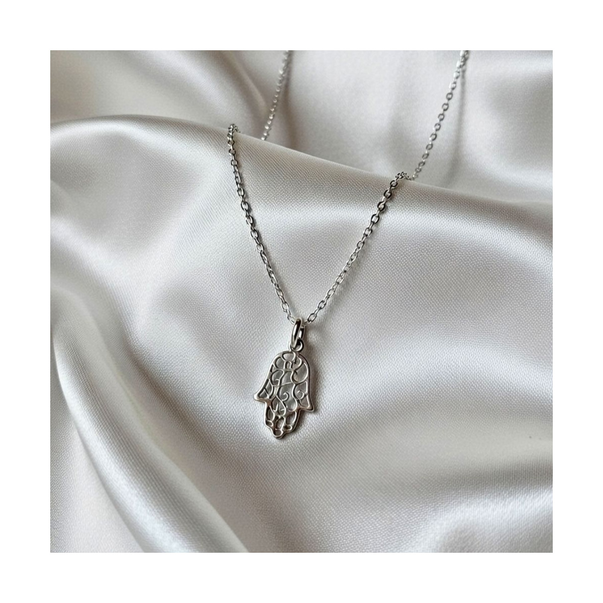 Gargantilla en Plata de Ley 925 con colgante de la Mano de Fátima tambien en plata.