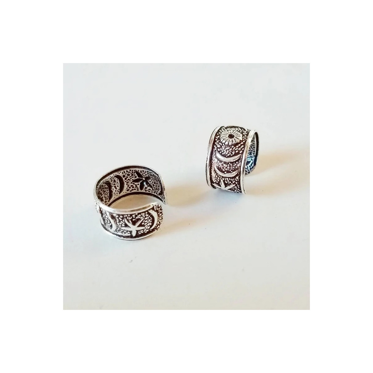 Estan elaborados en Plata de Ley 925 y decorados con grabados de tema universo: Lunas, sol y estrellas.