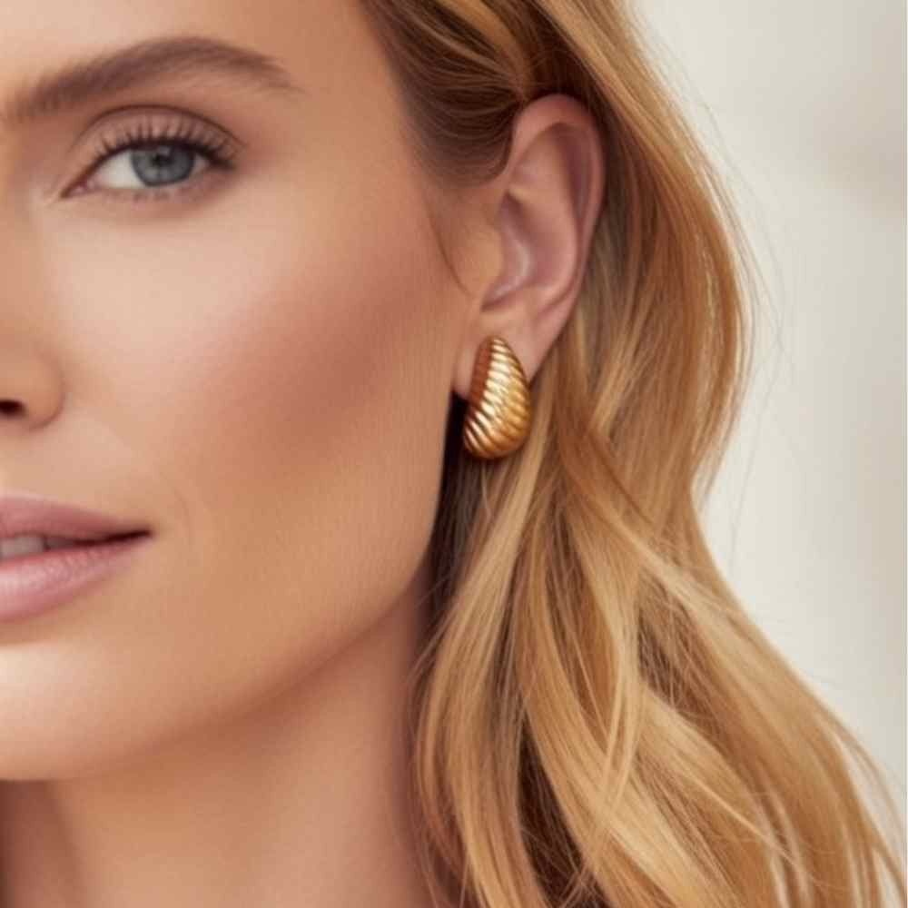 Pendientes Gota Textura Croissant Oro – Acero Inoxidable Premium